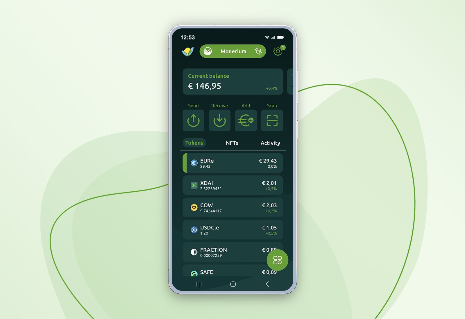 - Local currency selection: Choose your preferred fiat currency (euros, dollars, British pounds) to display token values in your local format throughout the app.