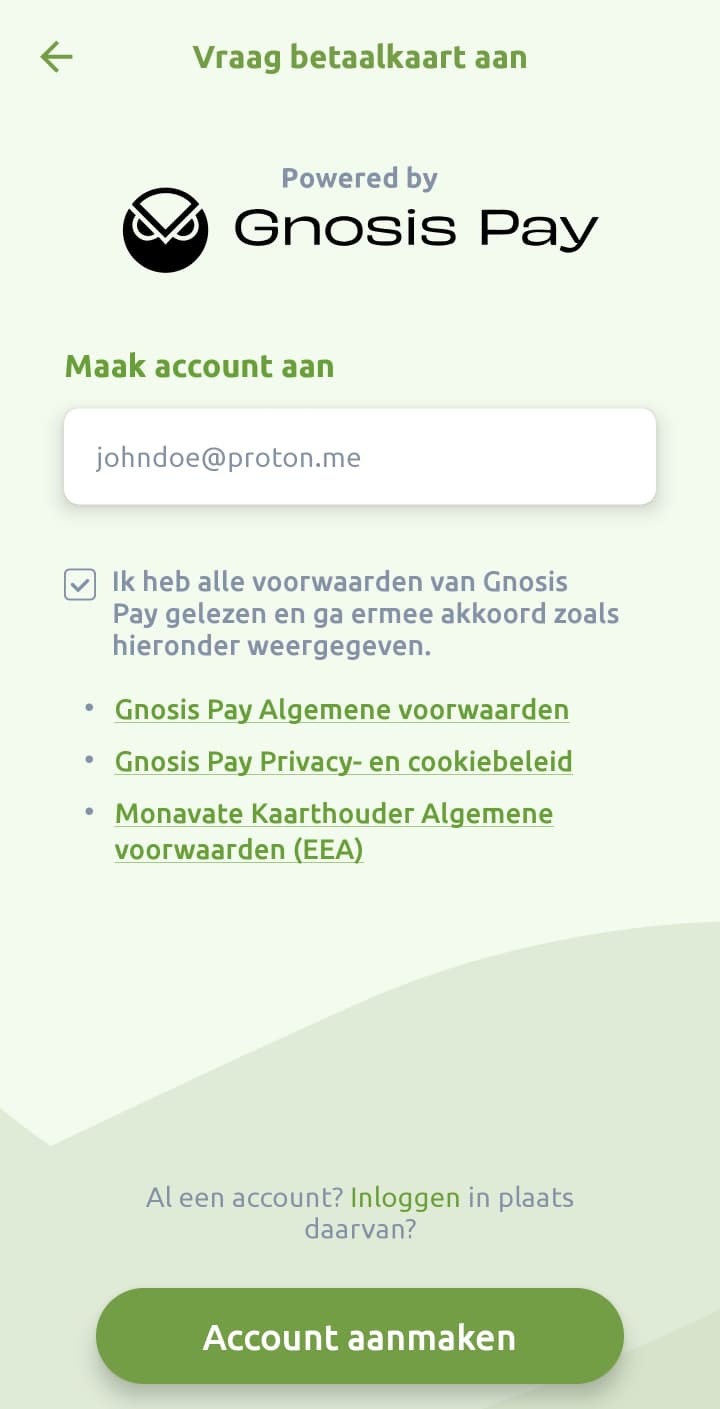 - Vul je e-mailadres in, accepteer de voorwaarden en tik op Create account.