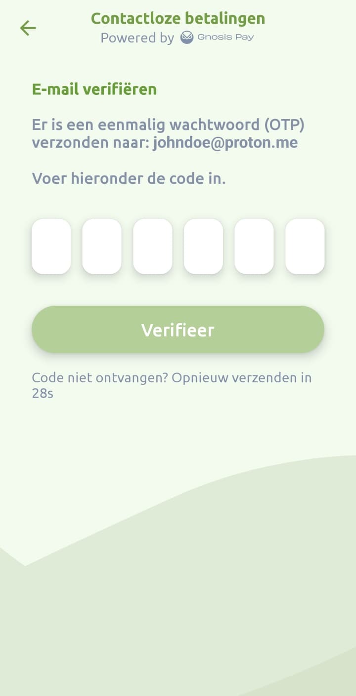 - Check je inbox voor de eenmalige verificatiecode en vul deze in de app in.