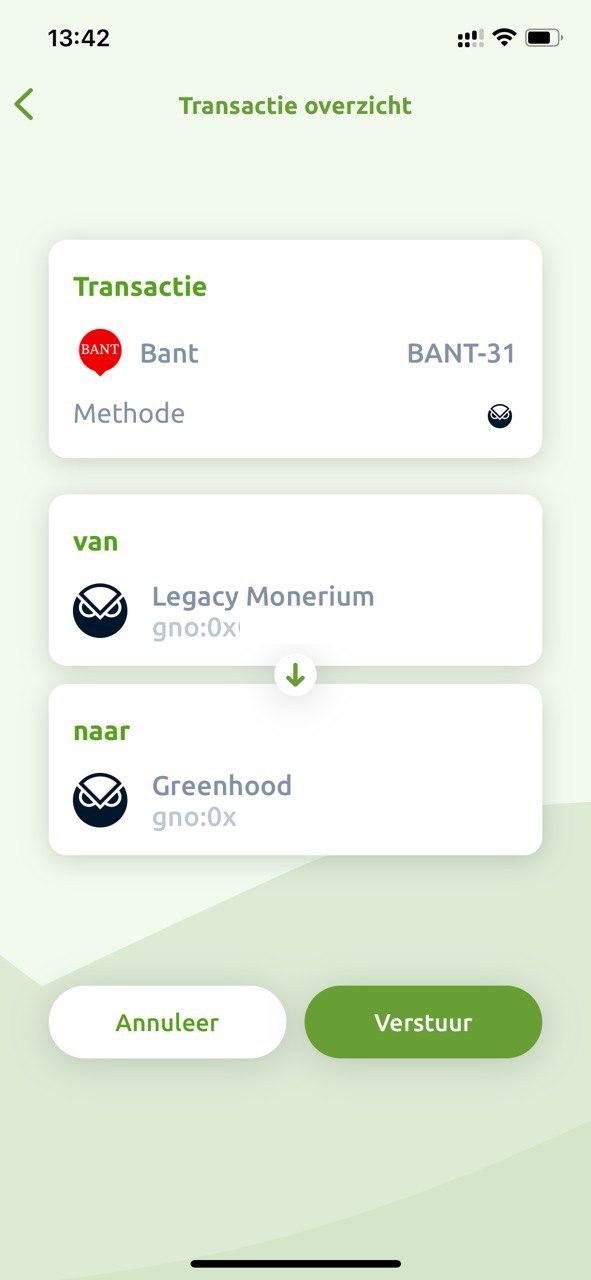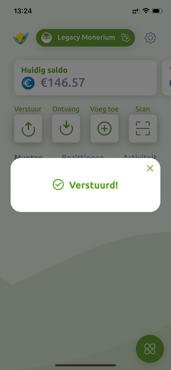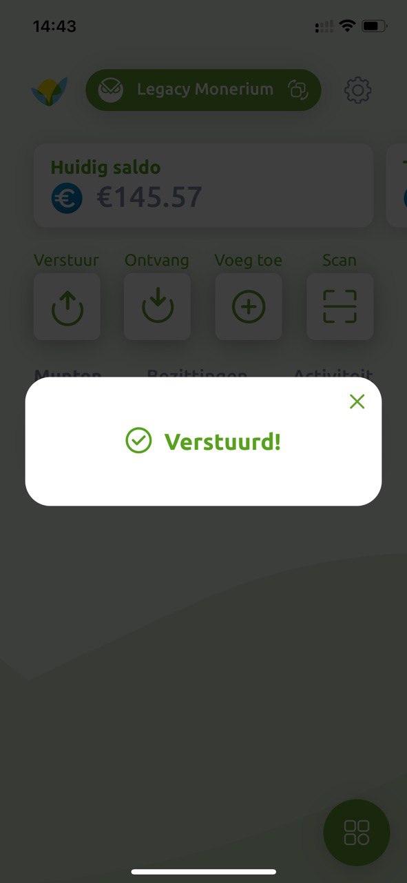 Er komt een pop-up zodra de Greenhood wallet klaar is met versturen.