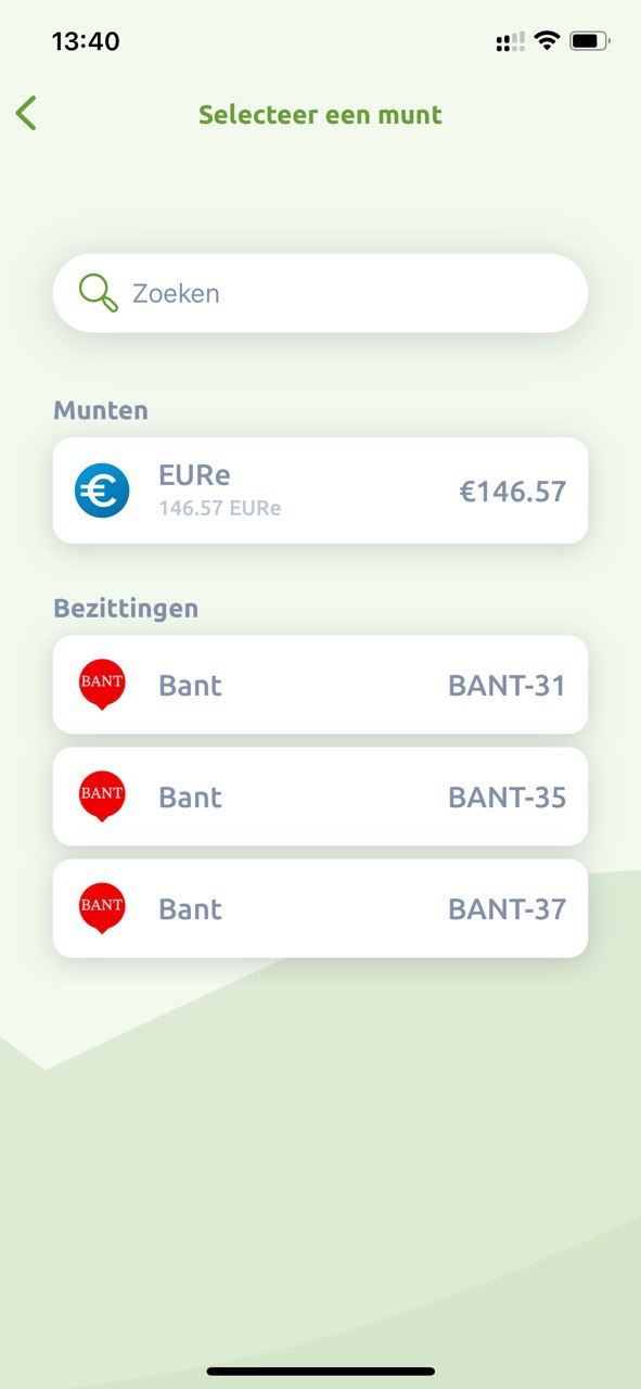 Kies een munt om te versturen, in dit voorbeeld: EURe.