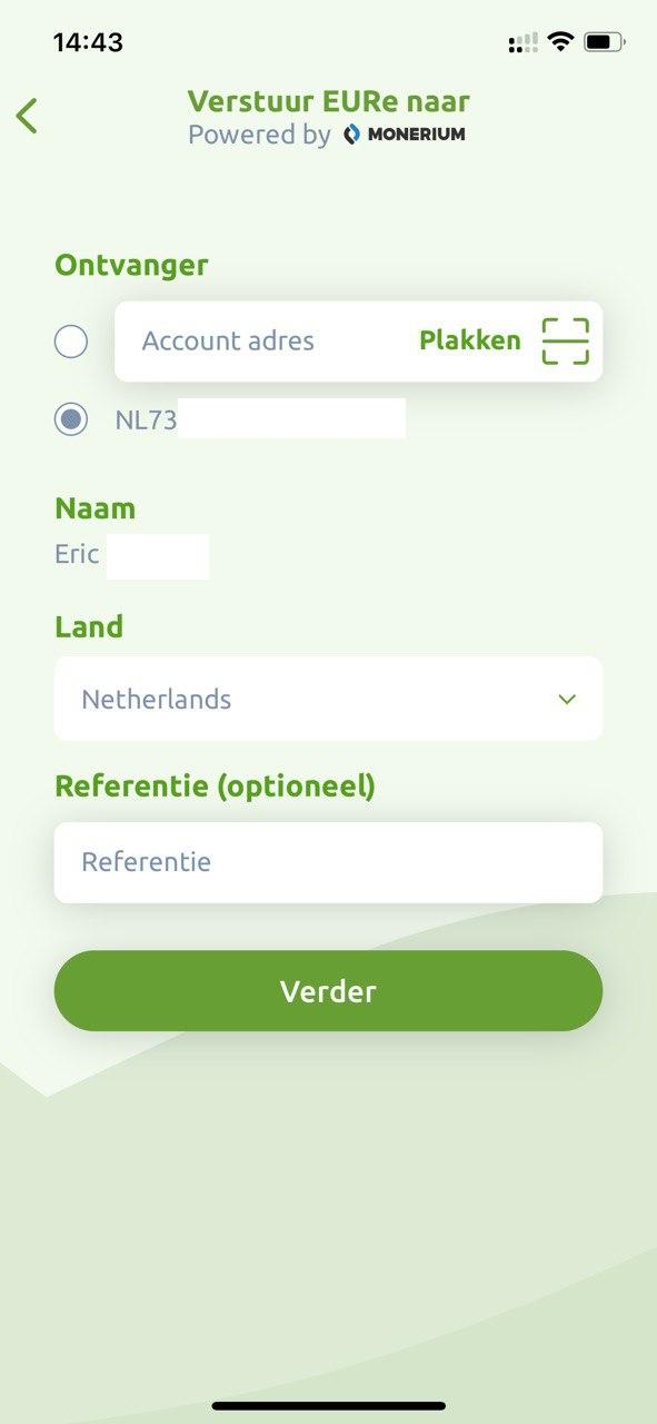 16. Selecteer Monerium account